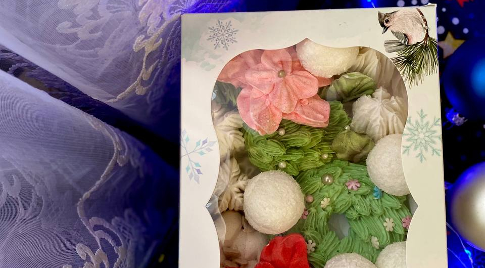 У стильній картонній коробці з новорічним принтом ви знайдете ніжне, ароматне та по-справжньому смачне зефірне наповнення.